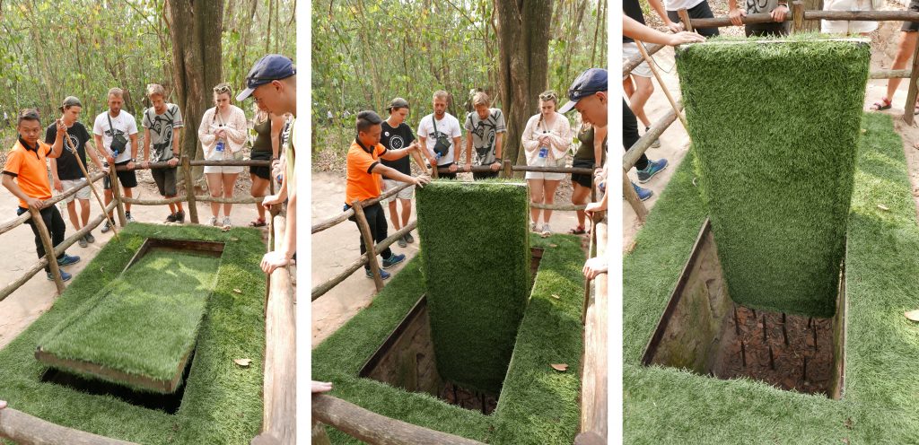 Tunelový komplex se rozkládal překvapivě převážně na povrchu. Tedy spíše prohlídka, tunely pod námi nepochybně byly :-). Ukazovali nám řešení problémů, které takový tunelový styl boje vyžadoval vyřešit. Pasti, jaké se kladly na nepřítele. Jak si vyráběli vše potřebné. Jak se řešilo stravováni, větrání, jak byly tunely zajištěné proti plynu, jak chodit v tunelu na záchod atd, atd. Bylo to velmi zajímavé.