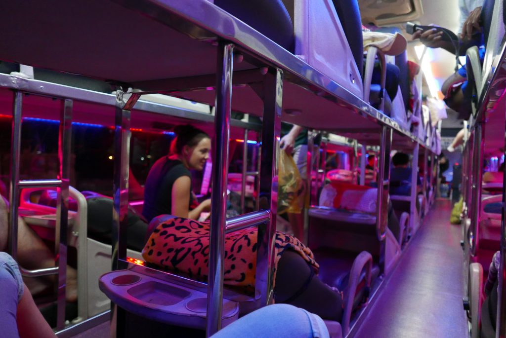 Na dálkový autobus jsme dorazili na čas. Nasedli jsme, byl celkem plný a tentokrát převážně turistický, samí mladí „batůžkáři“, ……. a my :-). I když lůžka byla pohodlná, moc jsem se v autobuse nevyspal. Spal jsem jen tak tři hodiny.
