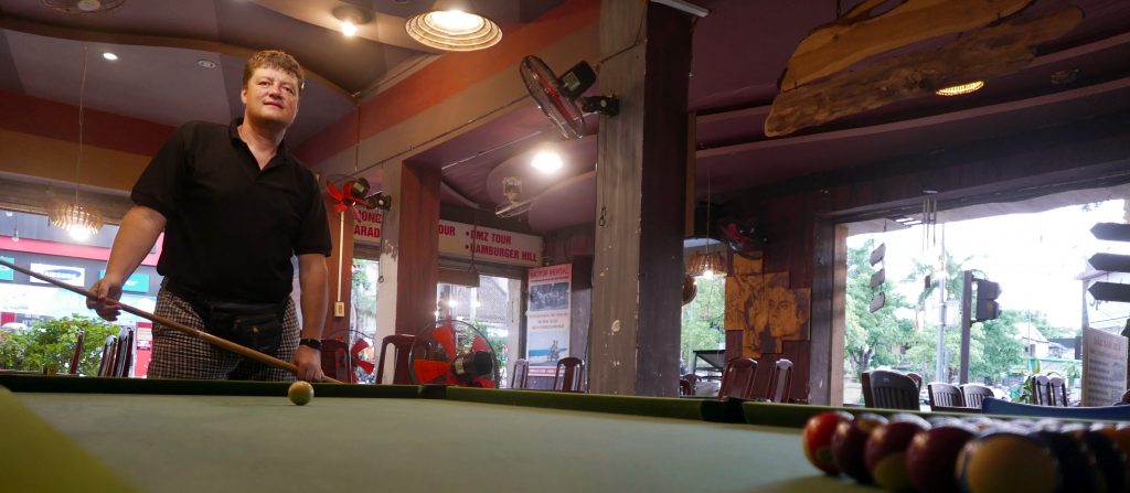Když jsem se dostatečně nakochal atmosférou zdejšího místa, povšiml jsem si opuštěného kulečníku v rohu místnosti, optal se obsluhy, zda-li si můžu zahrát, objednal ještě jedno pivo (nebojte, jsou to jen třetinky 🙂 a zahrál jsem si partičku kulečníku. Ostatně co, je 8.5., svátek, tak ten je dobré prožít v klidu a pohodě, no ne?