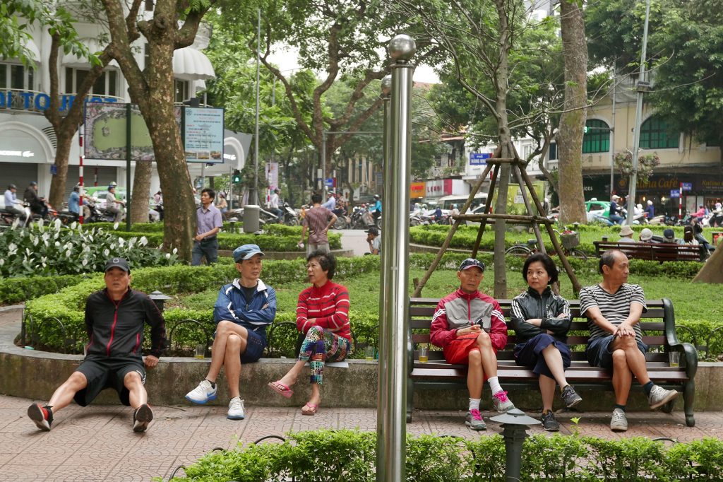 Po snídani a odložení zavazadel pod schody našeho hotýlku jsme se vydali poznávat centrum města. Hanoi, tedy spíše její centrum, mě osobně uchvátilo. Rozhodně více než rozlehlé Hue. Je to krásné centrum, fotogenické, malebné uličky s pouličními krámky a prodavači, blízko nás se ozývají kostelní hodny co odbývají čas, v parku lidi cvičí, korzují, posedávají na lavičkách, svačí u pouličních stánků vystrčených do úzkých uliček, zkrátka žijí tu běžný život i na ulici. Ostatně, je tu teplo, tak proč ne 🙂