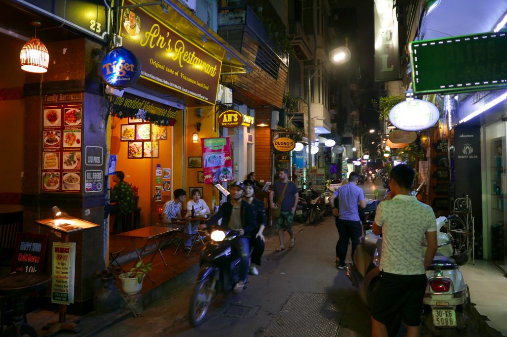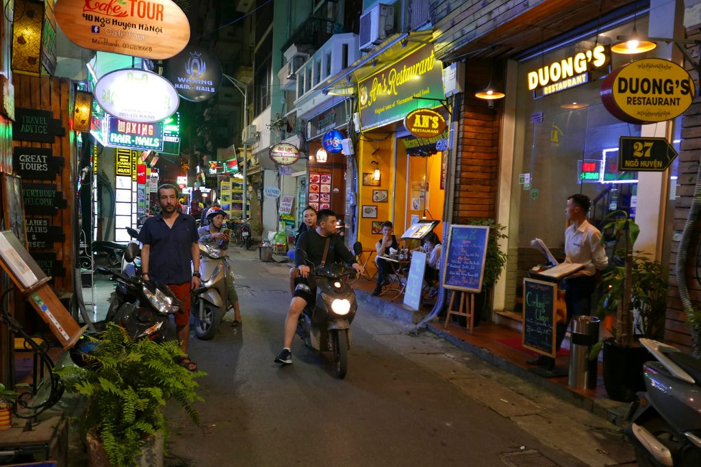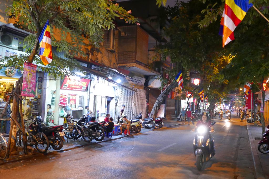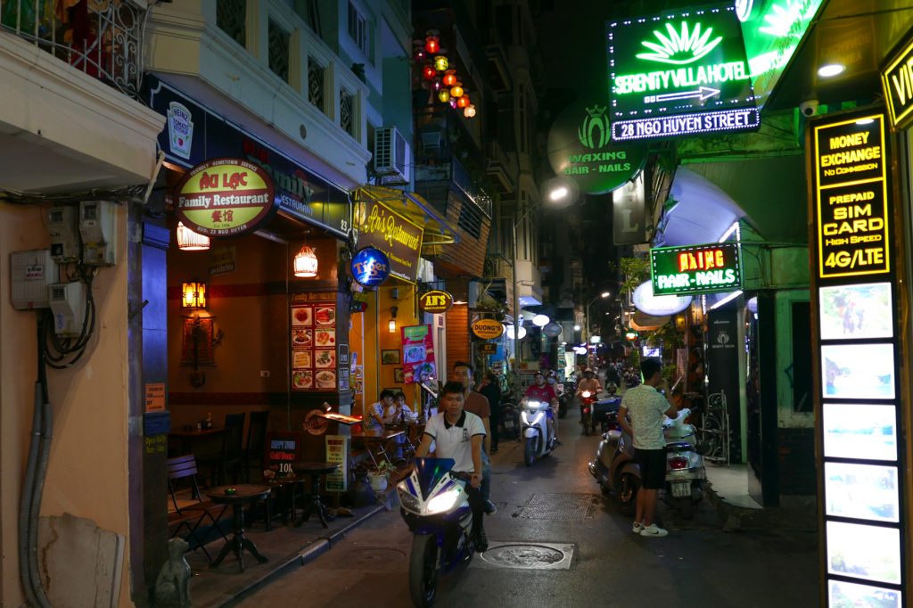 Na pevnině opět do autobusu a okolo města Hai Phong jsme se vrátili do Hanoje, do našeho hotelu, kde jsme si nechali pokoj i zbytek věcí. Já se tu zamiloval do uliček v centru Hanoje a tak jsem vzal fotoaparát a vyrazil nasávat večerní atmosféru.