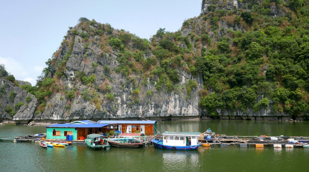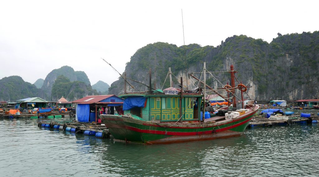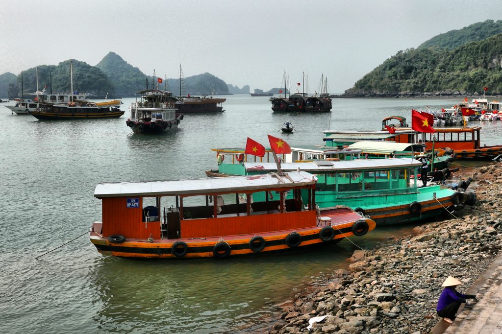 Po nastoupení jednoho z„opozdilců“ jsme v 7:44 vyrazili místní člunovou linkou k ostrovu Cat Ba, kde jsme byli zhruba za deset minut. Tam jsme půl hodny čekali na příjezd výletní lodi. Přístav byl naštěstí fotogenický a tak bylo co dělat.